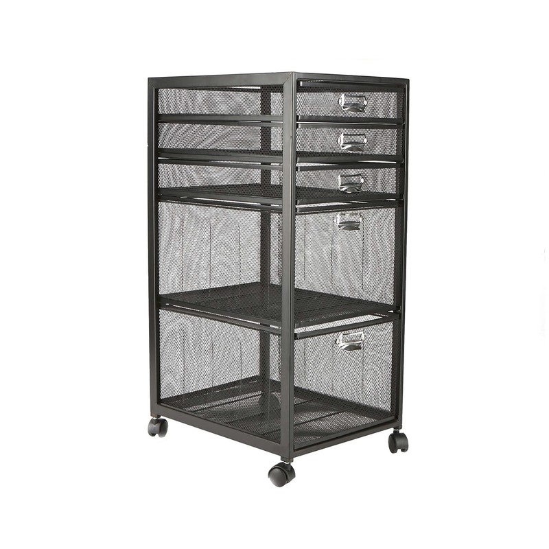 MIND READER Rolling File Cabinet with Drawers [5 Drawers] Craft Cart Organizer with Wheels, Slim Storage for Makeup, Kitchen, Utilities, Office Supplies, and Tools (BLACK MESH)