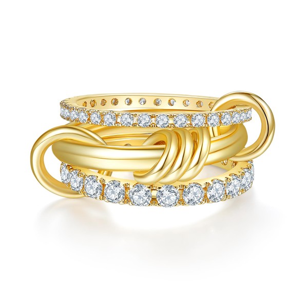 MINDDHA 14K Gold Plated Interlocked Stackable Rings for Women - Statement Multi Ring Stack - Cubic Zirconia Two-Toned Stackable Bands Stacking Jewelry Size 8