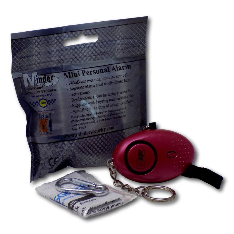 Minder 140db Police Approved Metallic Hot Pink Mini Minder Loud Personal Staff Panic Rape Attack Safety Security Alarm Keyring with Torch - Secured by Design Approved (Police Preferred Specification)