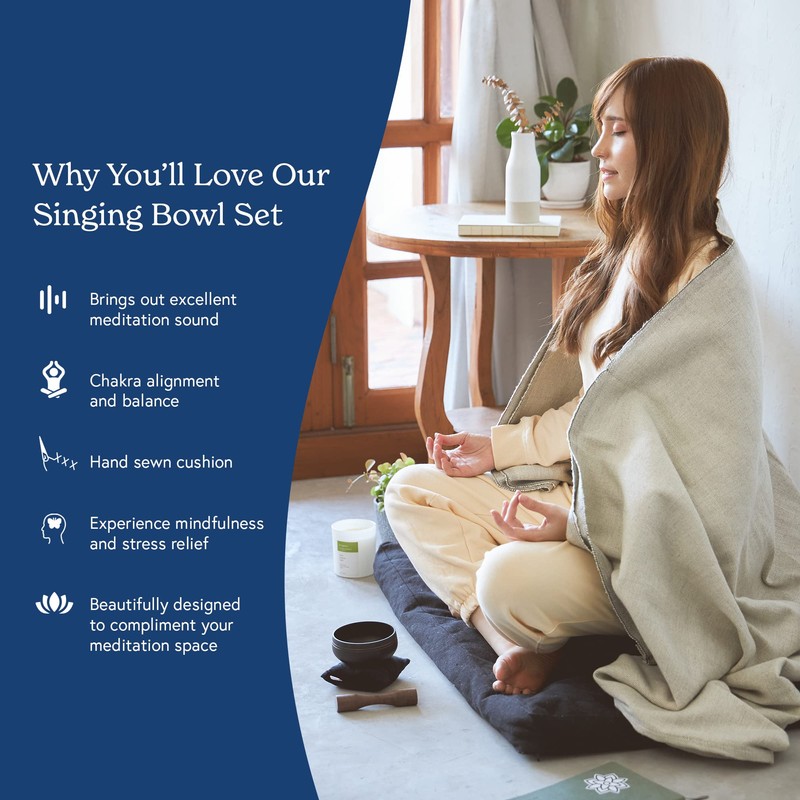 - BEAUTIFULLY DESIGNED: Our high-quality Tibetan Singing Bowls offer excellent tone that adds ambiance while enhancing your meditation and yoga practice. The singing bowl set includes a wooden striker and a hand sewn cushion that increases sound duration.