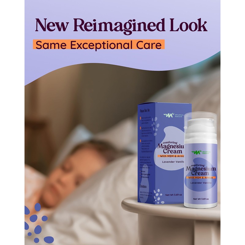 • Mindfully Natural Magnesium Cream's unique formula has calming magnesium, MSM known for helping the body balance it's swelling response, organic frankincense oil and arnica to help kids relax, soothe and prepare for bedtime.