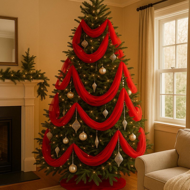 - Soft red Sheer Finish: the delicate red tulle fabric adds an ethereal, snowy elegance that enhances the festive atmosphere with a touch of sophistication and charm