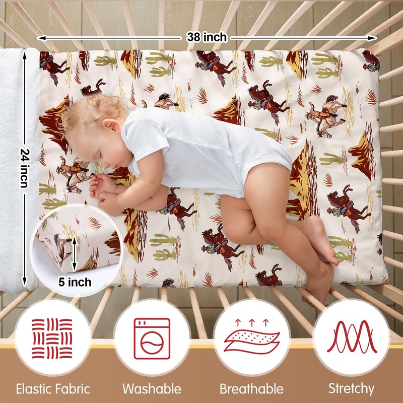 - Essential for Every Baby Registry: with this 2 piece western cowboy crib sheets set, fitting most mini cribs, play yards, and portable cribs