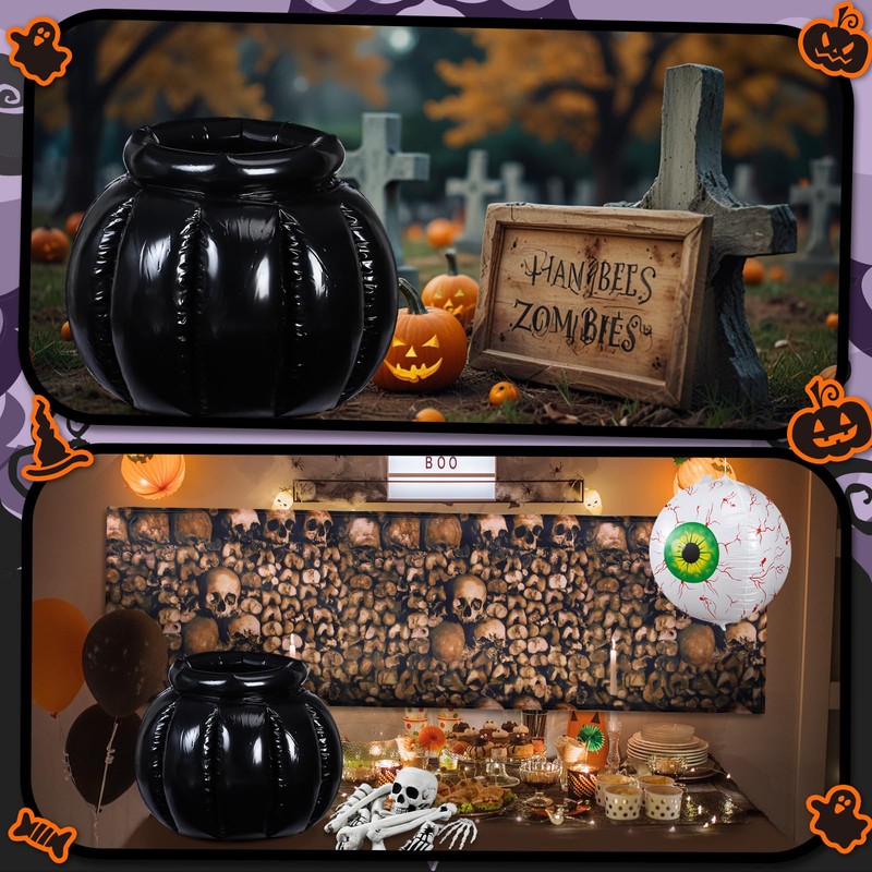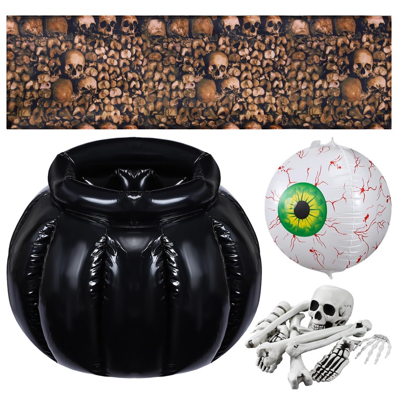 - Halloween Party Decorating Kit: you'll receive a Halloween party supplies kit that includes 1 pcs Inflatable cauldron cooler 1 pcs inflatable eyeball 1 pcs skulls and bones printed backdrop 12 skeleton bones props, create a festive and frightful atmosphere with our Halloween trunk or treat decoration package
