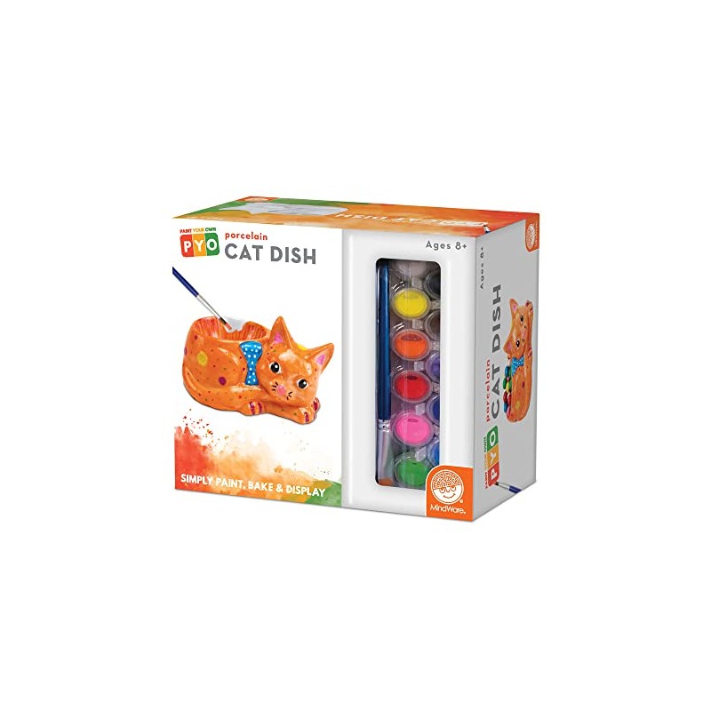 • Includes 1 cat dish, 1 plastic liner, 12 paints, 2 paintbrushes and 1 painting guide. (Ages 8+)