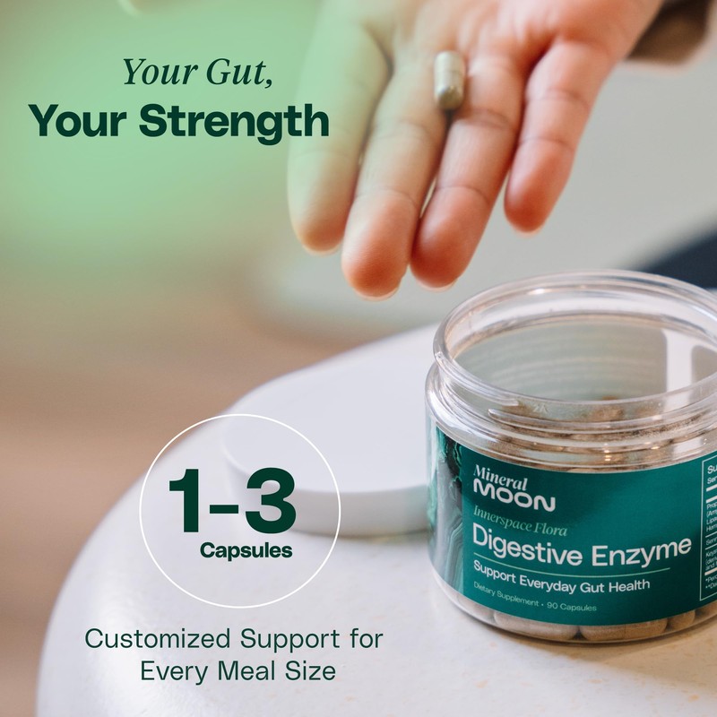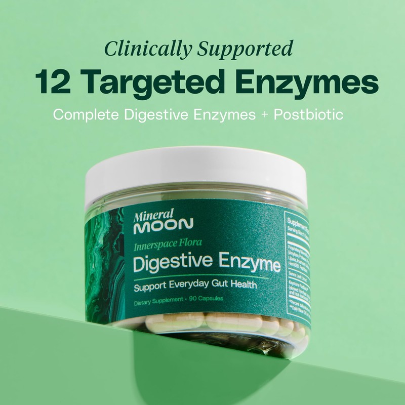 Mineral Moon Innerspace Flora Digestive Enzymes for Men and Women with 12 Enzymes for Digestion and Senna Leaf Extract – Supports Gut Health, Digestion Supplement, Nutrient Absorption - 90 Capsules