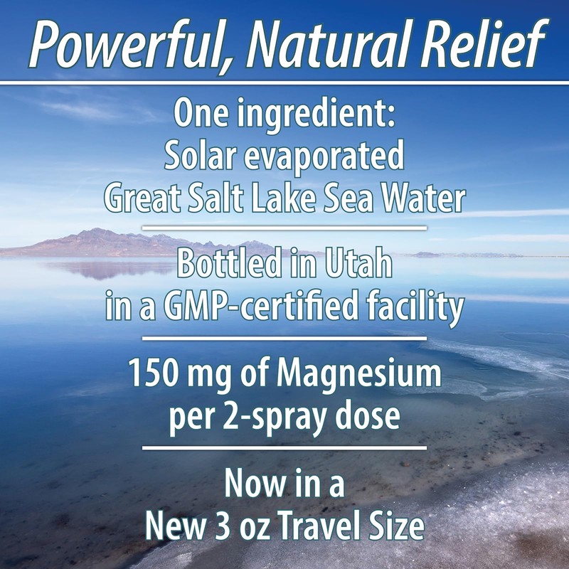 - ALL NATURAL FORMULA: elete Pure Magnesium Oil Spray has just one ingredient: solar evaporated sea water from the Great Salt Lake. Feel good knowing you are giving your body an all natural boost.