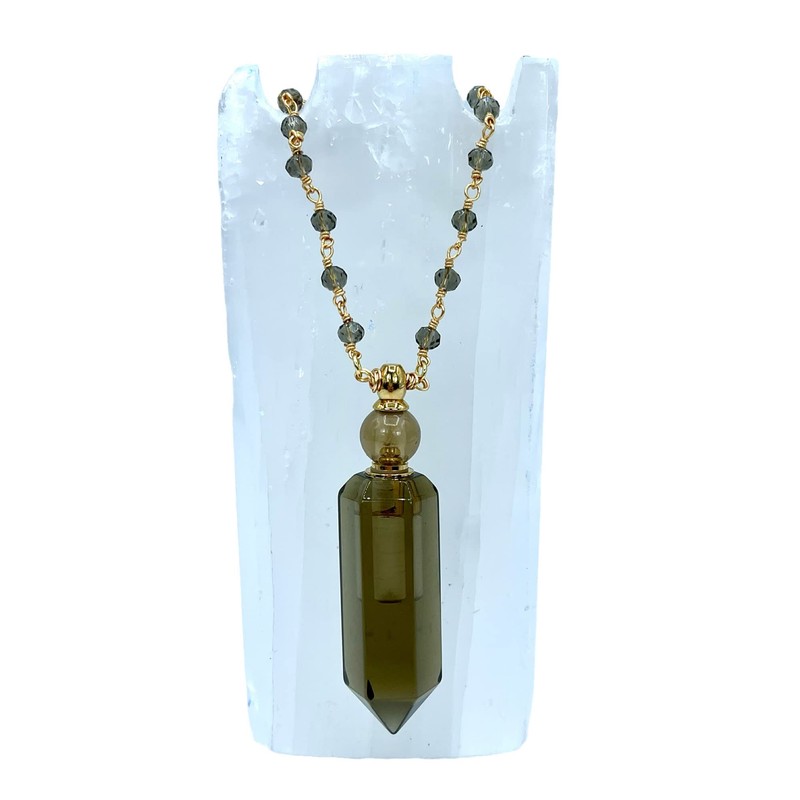 MINERALIST Collection, Smoky Quartz Point Bottle with Beaded Chain, 32", Thoughful Gift for Mother's Day, Natural Healing Crystal Jewelry for Spiritual, Reiki, Yoga, Meditation, Chakra