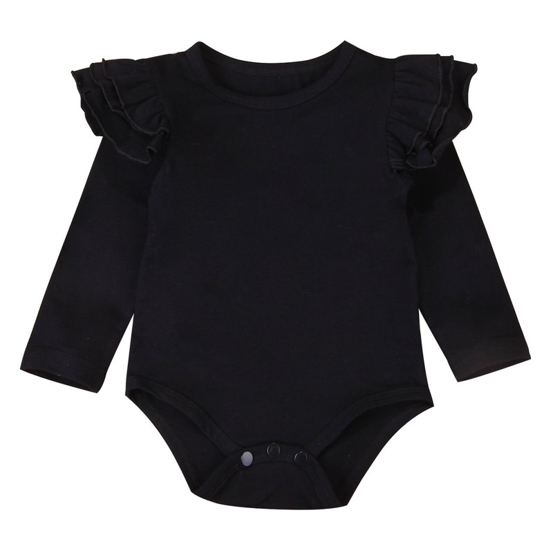 Minesiry Infant Baby Girl Basic Ruffle Long Sleeve Cotton Romper Bodysuit Tops Clothes (Black, 9-18 Months)