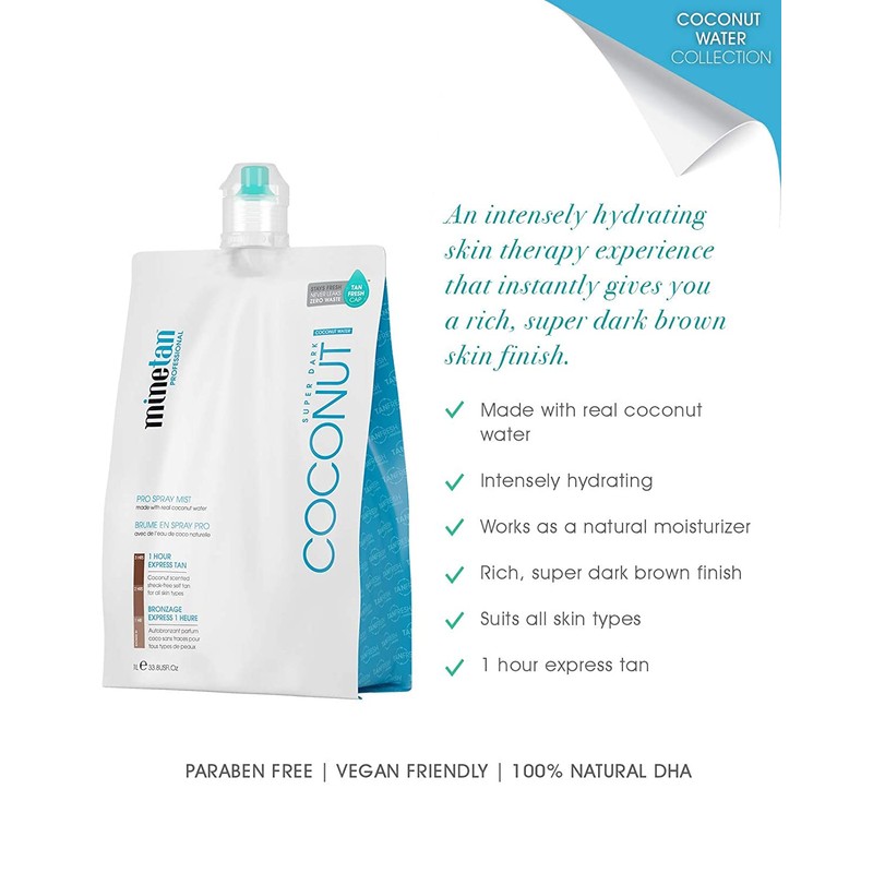 MineTan Spray Tan Solution - Coconut Water Pro Spray Mist - Salon Professional 1 Hour Express Tan Made With Real Coconut Water, 33.8 fl oz (MIS201308)