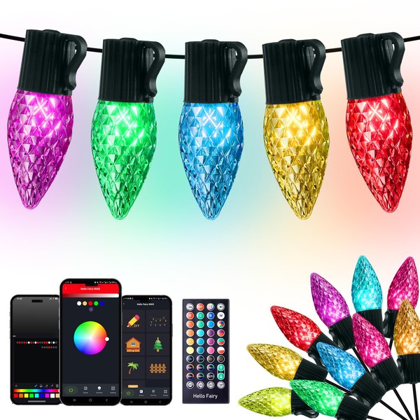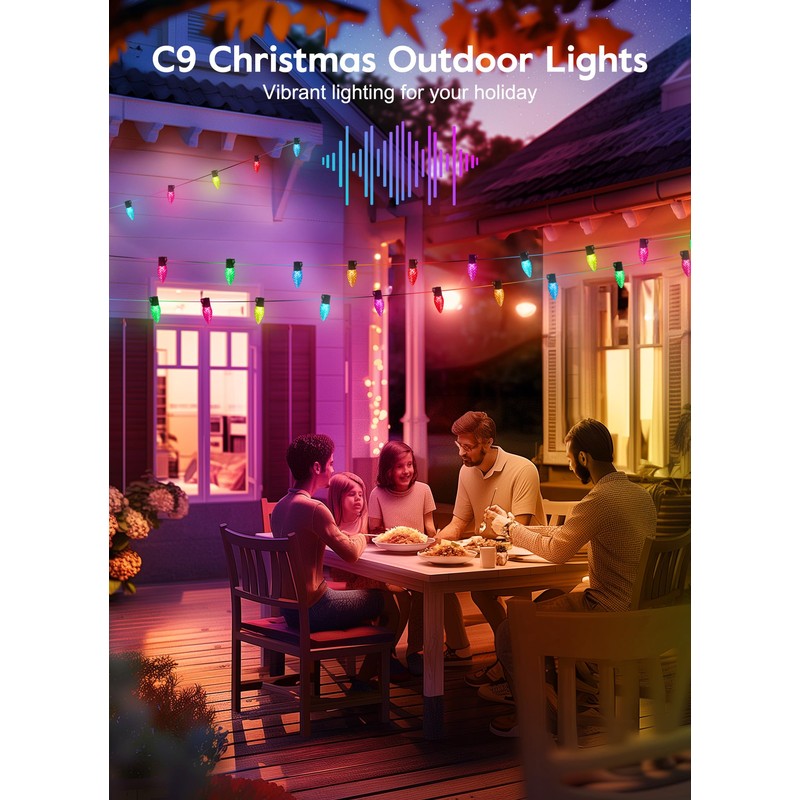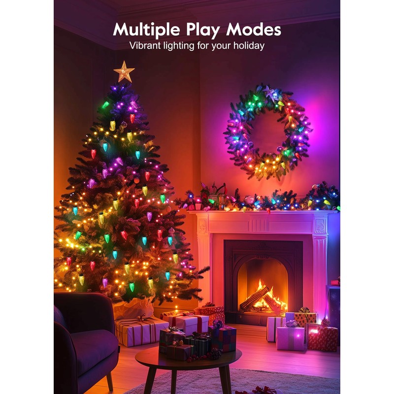 - Connectable Smart Christmas Lights Outdoor: The 99ft C9 LED Christmas lights feature 150 retro diamond faceted crack-proof bulbs. It can connect up to 300 bulbs, easily wrapping around trees, hanging from eaves, or placed anywhere. With app, controller, or remote control options, you can effortlessly create stunning atmospheres for parties and holiday celebrations