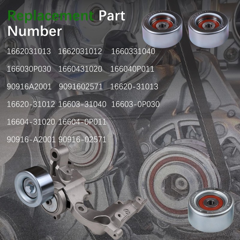 - Wear-resistant Materials: The belt tensioner and idler pulley and drive belt assembly kit is made of high-strength, wear-resistant materials, which can be maintained in good condition over a long period of time, and is not easy to be damaged or deformed