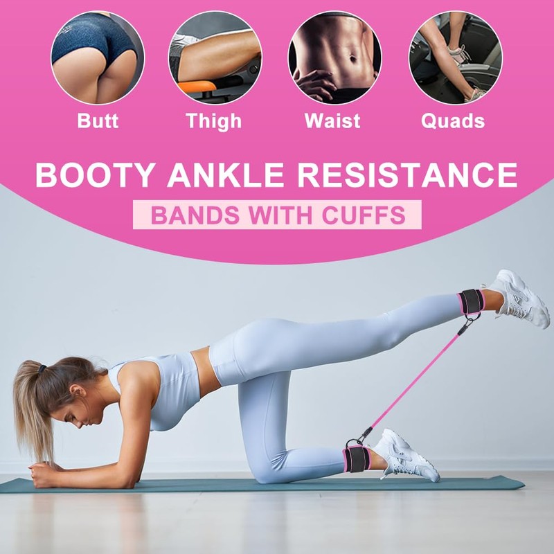- [Multi-purpose training] - Our resistance bands set with ankle straps are versatile, not just limited to hip kickbacks, they can also be used for a variety of exercises including hip thrusts, ankle resistance training, glute training, lunges, and more. Ankle resistance bands with cuffs target your glutes, legs and butt to help you build strength and build muscle, and are suitable for all fitness levels.