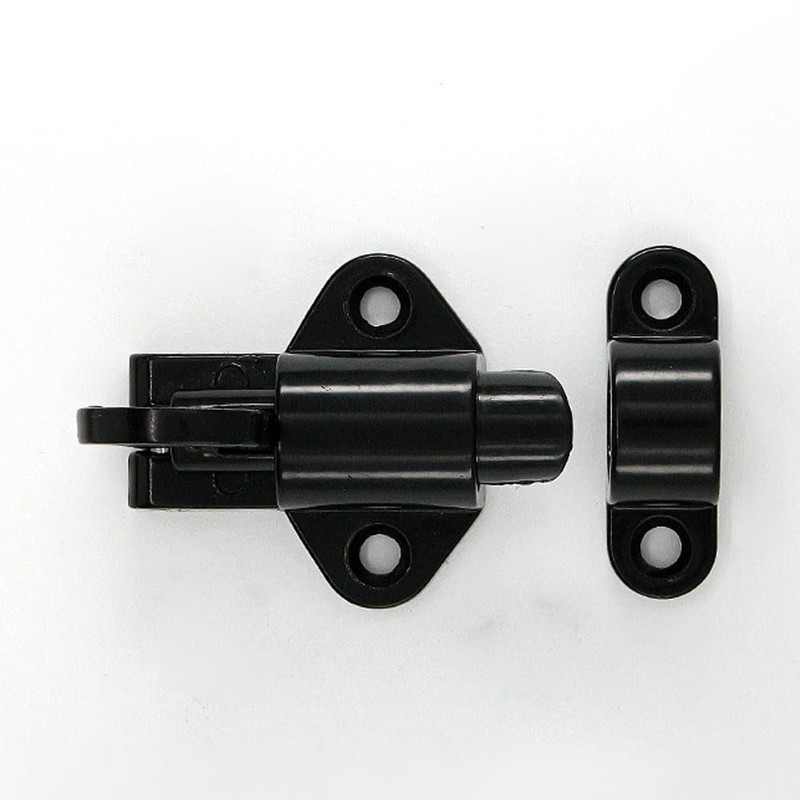 Automatic door bolts are constructed from premium solid aluminium alloy with beautiful polishing and finish. Door locks are difficult to rust or oxidize and will serve longer life. Designed with self-latching, the security gate pushes closed securely with the spring blot lock. Easily control the speed of the door closing and opening. Self-latching bolts are ideal for secure pool, garden, door, window, cabinet, sheds, gates, barn, cabinet, drawer, dresser, pet fence, baby secure door etc.Specification:Product Name: Spring door lock.Size: ( L X W): 5.8 x 4.3cm / 2.31 x 1.7inch.Material: Aluminum alloy.Color: Black.