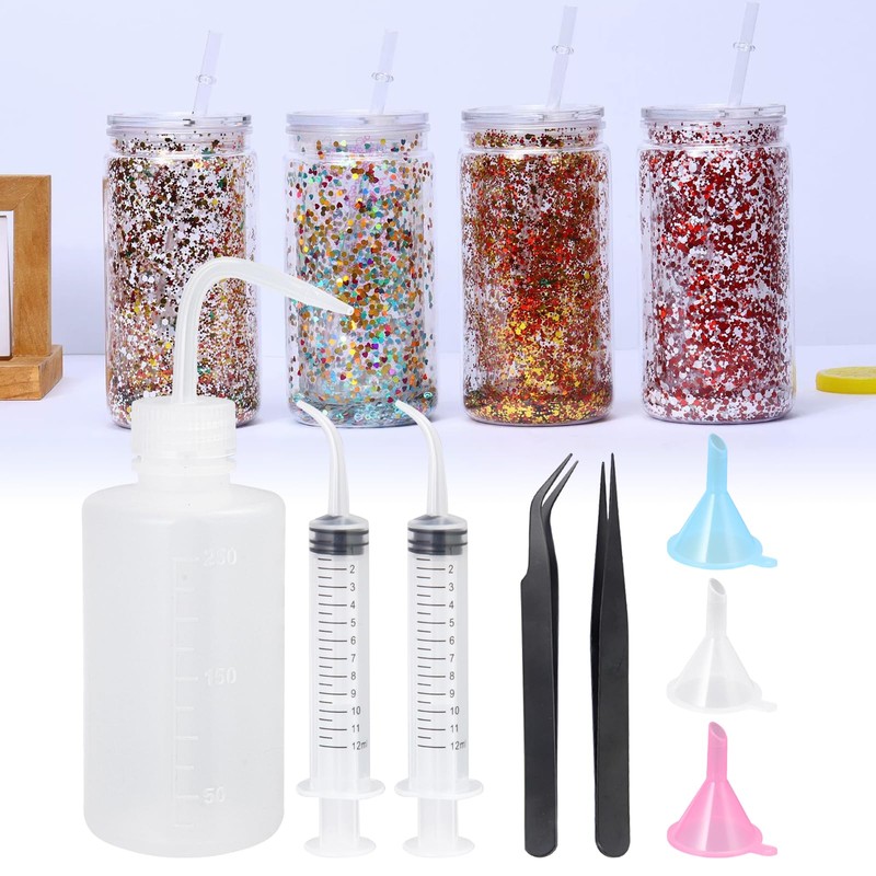 MingQiEven 8 Pack Snow Globe Tumbler DIY Kit - Includes Plastic Squeeze Bottle, Small Funnel, Tweezers, and Bent Syringe for Creative Cup Making
