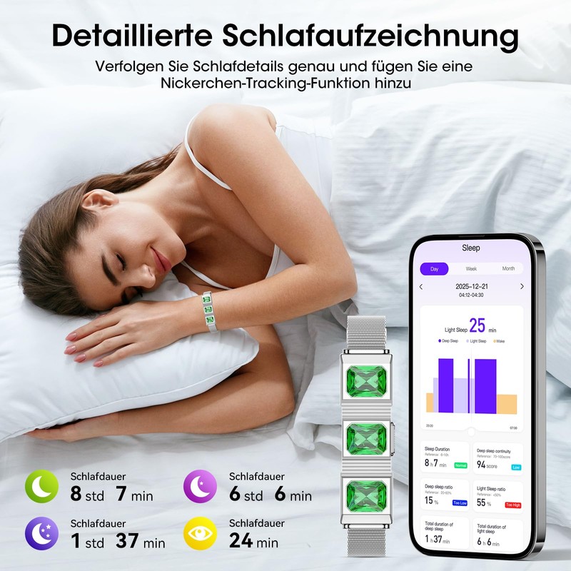 - More accurate sleep monitoring: It can accurately monitor the sleep state in different periods (deep sleep, light sleep, wakefulness, fast eye movements). In addition, a nap function has been added, and short sleep phases during the day can also be recorded. Even if you sleep due to jet lag due to work problems, you don't have to worry about your sleep state not being detected.