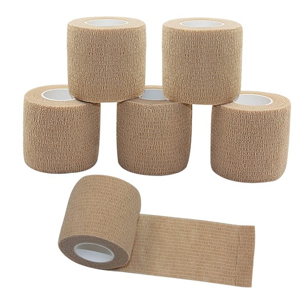 MINGYUE伸縮包帯 弾性包帯 テーピングテープ 自己粘着性 5cm×6rolls 手で切れる(肌色)