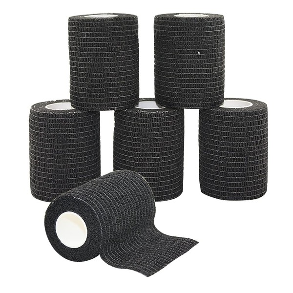 MINGYUE伸縮包帯 弾性包帯 テーピングテープ 自己粘着性 7.5cm×6rolls 手で切れる(ブラック)