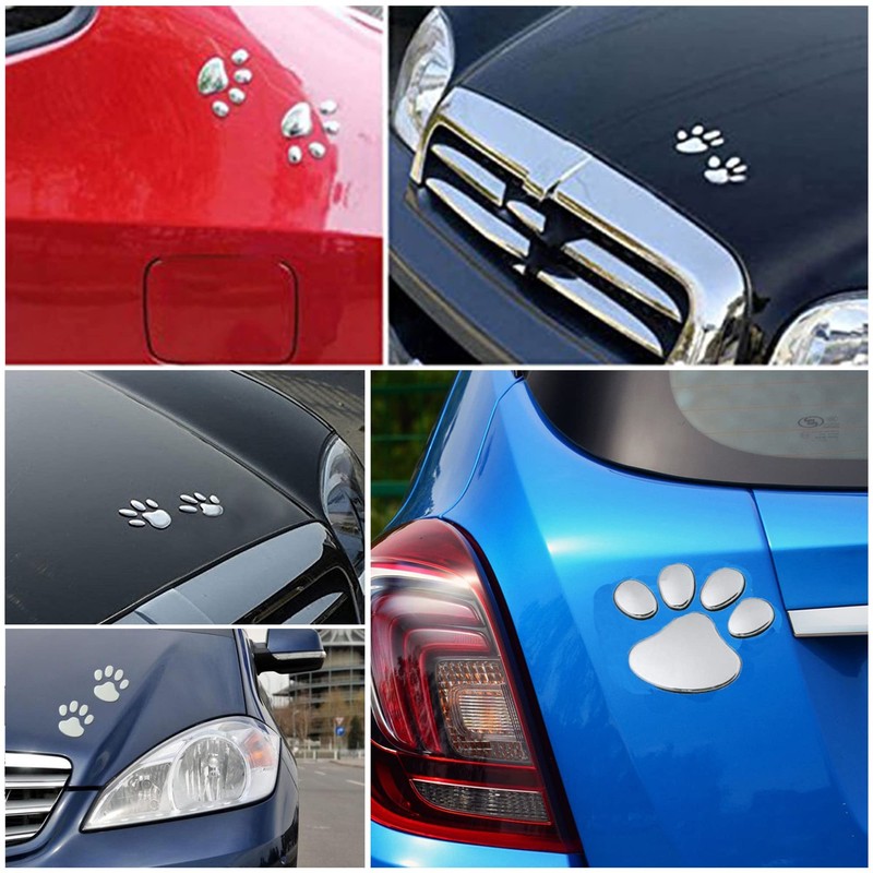 MINGZE Pack of 12 3D Car Stickers, Waterproof Dog Paws Footprint Stickers, Paw Print Decoration, Suitable for Cars, Motorcycles, Scooters, House Windows, Mirrors (Silver)