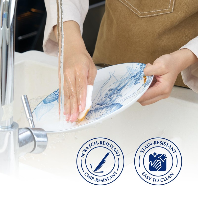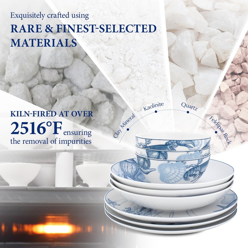 - ๐๐๐๐ & ๐ ๐จ๐จ๐ ๐๐จ๐ซ ๐ก๐๐๐ฅ๐ญ๐ก - ๐๐๐๐ ๐๐๐% ๐๐ซ๐จ๐ฆ ๐ฉ๐ฎ๐ซ๐ ๐ง๐๐ญ๐ฎ๐ซ๐๐ฅ ๐ข๐ง๐ ๐ซ๐๐๐ข๐๐ง๐ญ๐ฌ: Our Coastal Dinnerware Set was made from pure and benign porcelain materials, which are safe and healthful and free of typical toxins like lead and cadmium. Peace of mind to use for every family member for a very long time