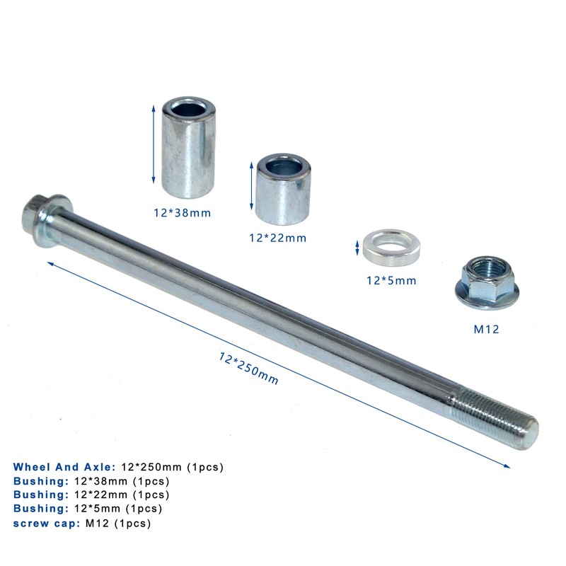 Minho 12mm 250mm Front Rear Axle with Bush 38mm 22mm 5mm Fit for PIT PRO Dirt Bike Scooter QUAD ATV