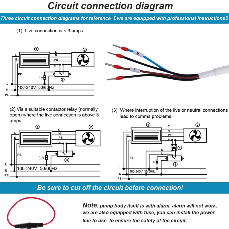 Please disconnect the power supply before making any adjustment. If necessary, anti-siphon device and fuse can be added during installation. The picture explains how to use it in detail.