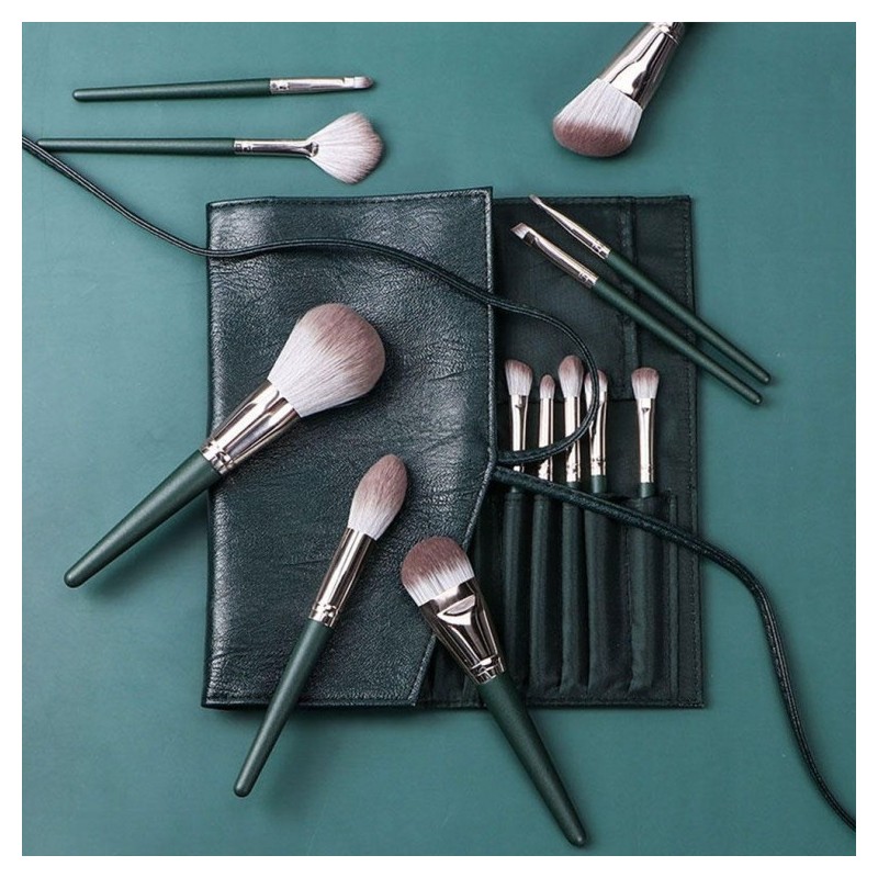 Mini 14-Piece Makeup Face Brush Set 14-Piece Brush Set - Green