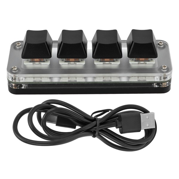 Mini 4 Key Gaming Keyboard Mechanical Keypad Type C to USB Interface Programming Black with RGB Light