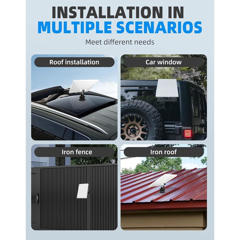 - VERSATILE MOUNTING FOR VARIOUS APPEARANCES: Rectangular Satellite suction cup mount is suitable for use on RV roofs, yachts, roof racks, and guardrails, or outdoor, this mount offers flexibility for a range of outdoor applications. Enjoy trusted high speed internet access no matter where your adventures take you