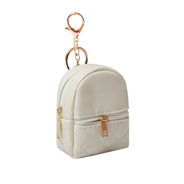 Mini Backpack Cute Cosmetic Bag for Women, Creative Cute Pendant Keychain Key-chains Keyrings PU Leather Makeup Bag Key Pocket Lipstick Bag Card Holder Data Cable Organizer Zipper Pouch (Beige)