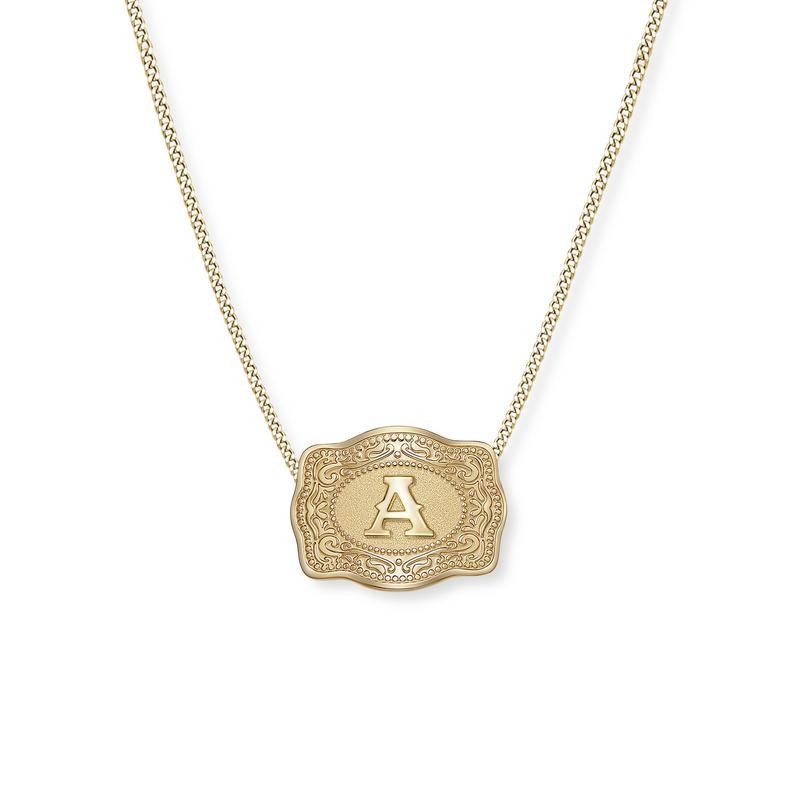 Mini Belt Buckle Necklace (Initial) - Gold - Letter: X, Color: Gold, Chain: Curb Chain (16" + 2" extender)