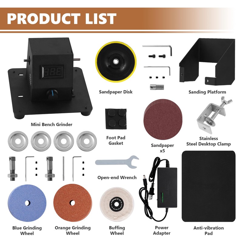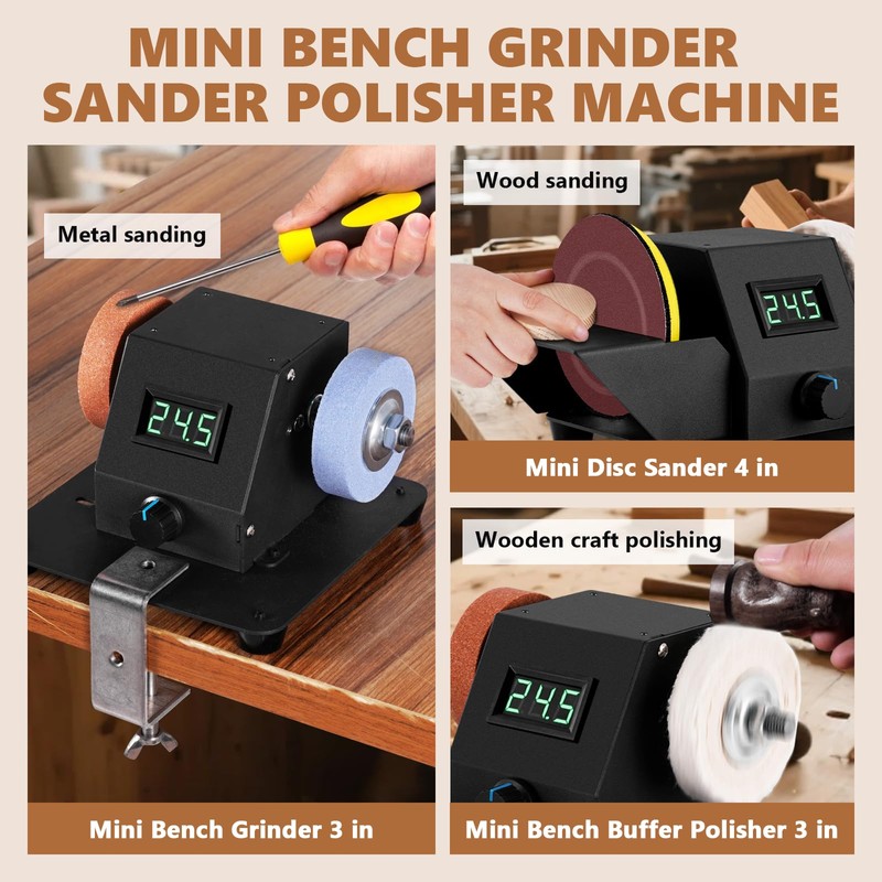 • 【Applications】: This multifunctional bench grinder is ideal for hobbyists and beginners, suitable for tasks such as DIY crafts, sharpening kitchen knives, small woodworking projects, model making, jewelry crafting, small repairs, and metalworking.