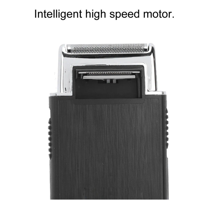 motor inteligente de alta velocidad, buen efecto de afeitado de barba. Hoja de acero inoxidable, resistente a la corrosión y duradera, es lo suficientemente incisiva como para afeitarse bien la barba. Material de aleación de aluminio y ABS, cómodo de tocar y sujetar. Diseño de hoja de patillas desplegables, ayuda a cortar y limpiar las patillas. El cabezal de la cuchilla se puede lavar directamente con agua, es fácil de limpiar. Especificaciones: la afeitadora está equipada con hoja de acero inoxidable, resistente a la corrosión y duradera, es lo suficientemente afilada como para afeitarse bien la barba. Material de aleación de aluminio y ABS, cómodo de tocar y sujetar.