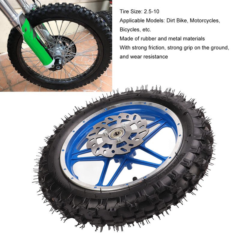 Mini Bike Front Wheel Assembly Dirt Bike Front Wheel 2.5‑10 with Disc Sprocket Bearing Rim Tire Assembly for Motorcycle