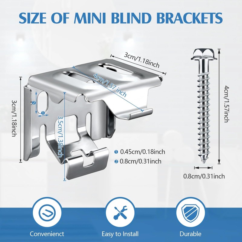 - Suitable bracket size: the mini blind brackets measure approx. 1.18 inch in width, 1.18 inch in length, appropriate size to use; Please check the dimensions carefully before purchasing to make sure they can match your blinds