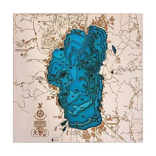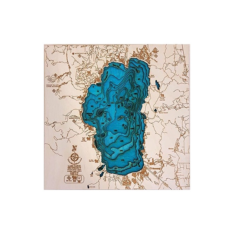Mini BLUE! Lake Tahoe 3D Wooden Map
