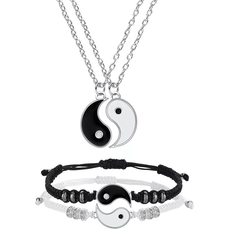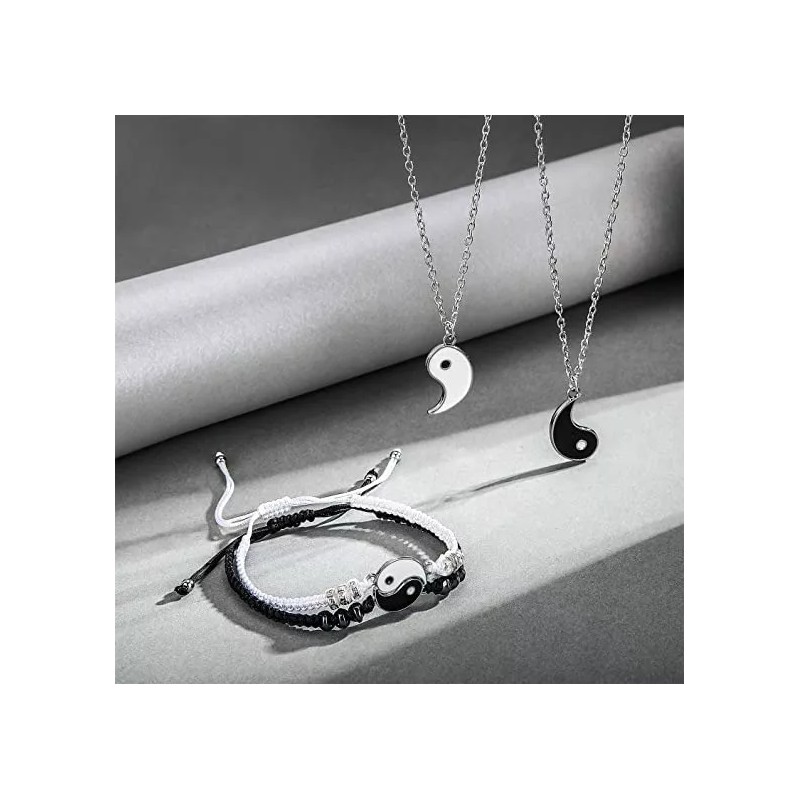 COMBINACIÓN IDEAL: Recibirás 2 collares colgantes, 2 pulseras de cordón ajustable Yin Yang a juego y 2 pulseras de relación ajustables, la combinación ideal para tu uso.