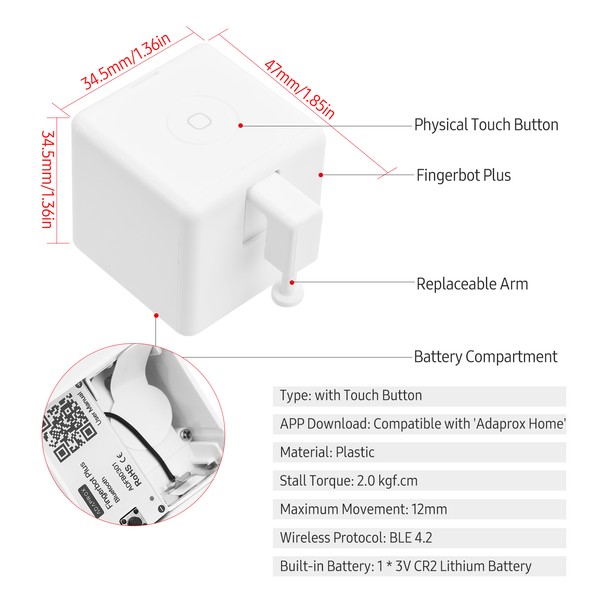 APP Control: Compatible with 'Adaprox Home' APP, easy to control the smart fingerbot via smart APP in your mobile phone anytime and anywhere.