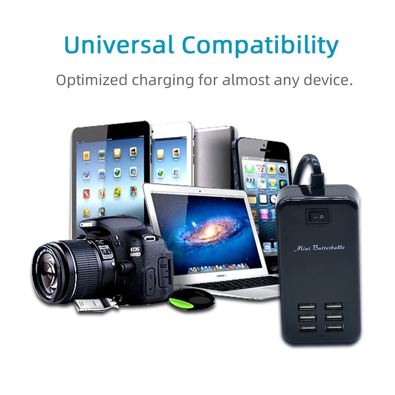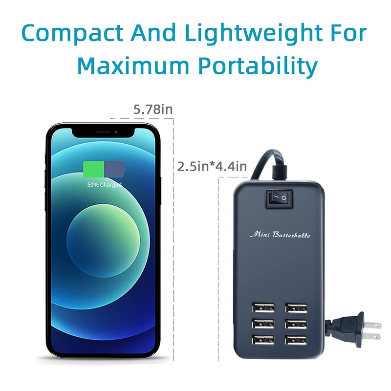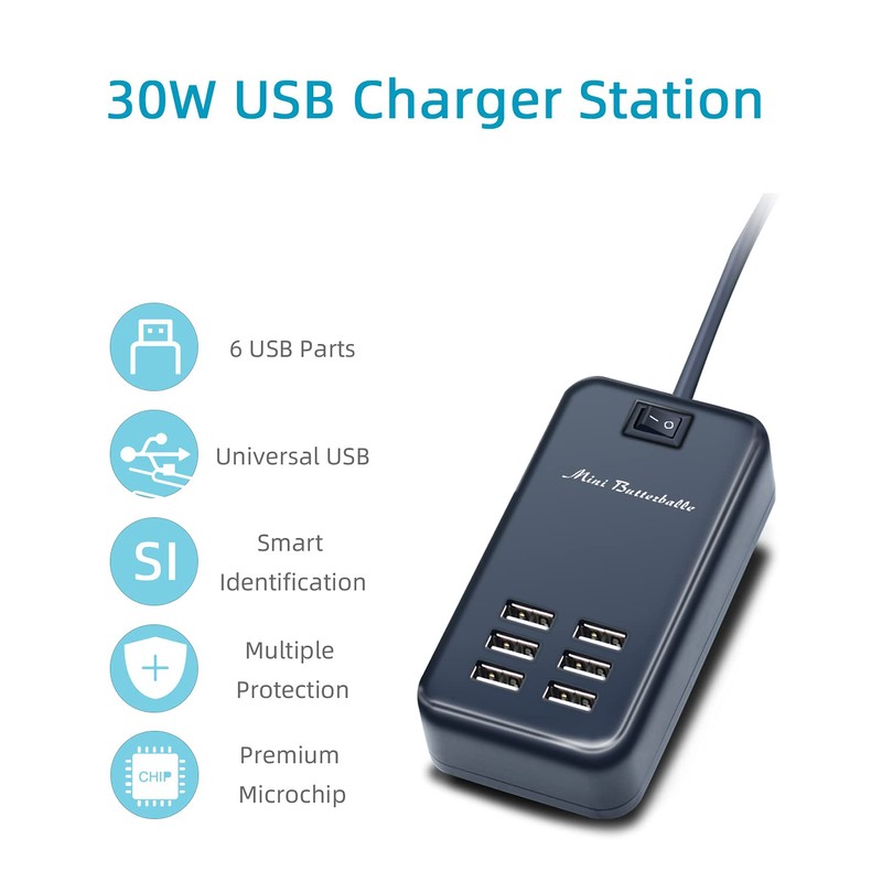 Mini Butterballe USB Charger Station, 6 Port Desktop Charging Station for Multiple Devices, Wall Power Strip with Switch