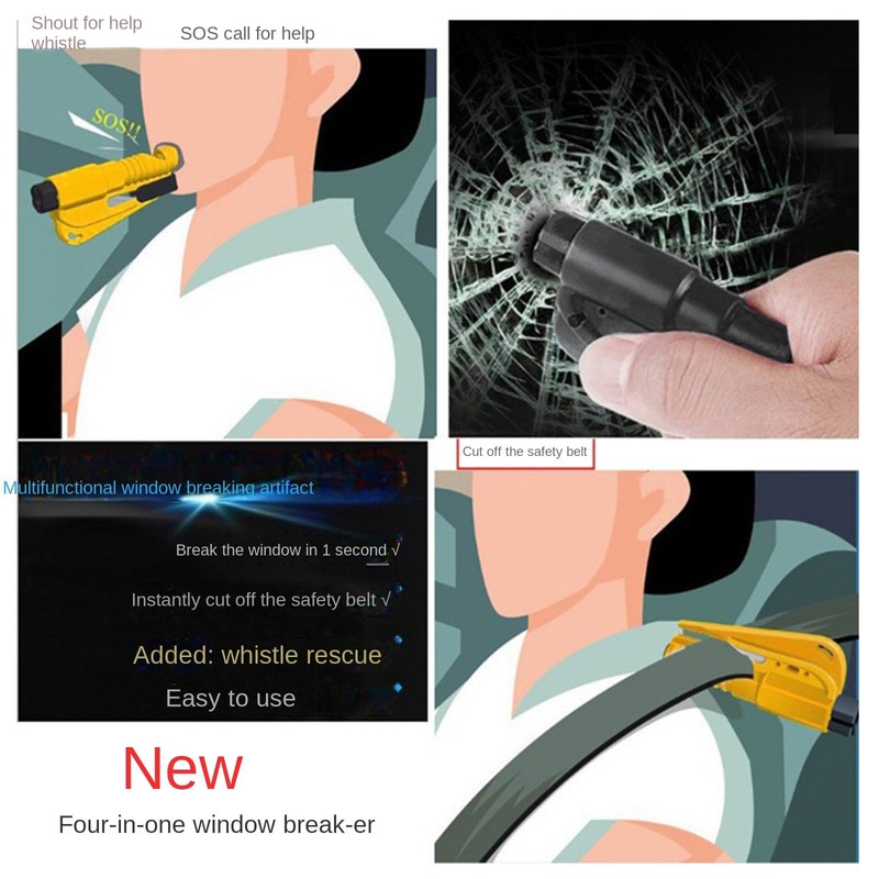 - 【3-in-1】This 3-in-1 car escape tool, including an emergency whistle, seat belt cutter and window breaker, can help escape from a sunken, overturned, crashed, or burning car