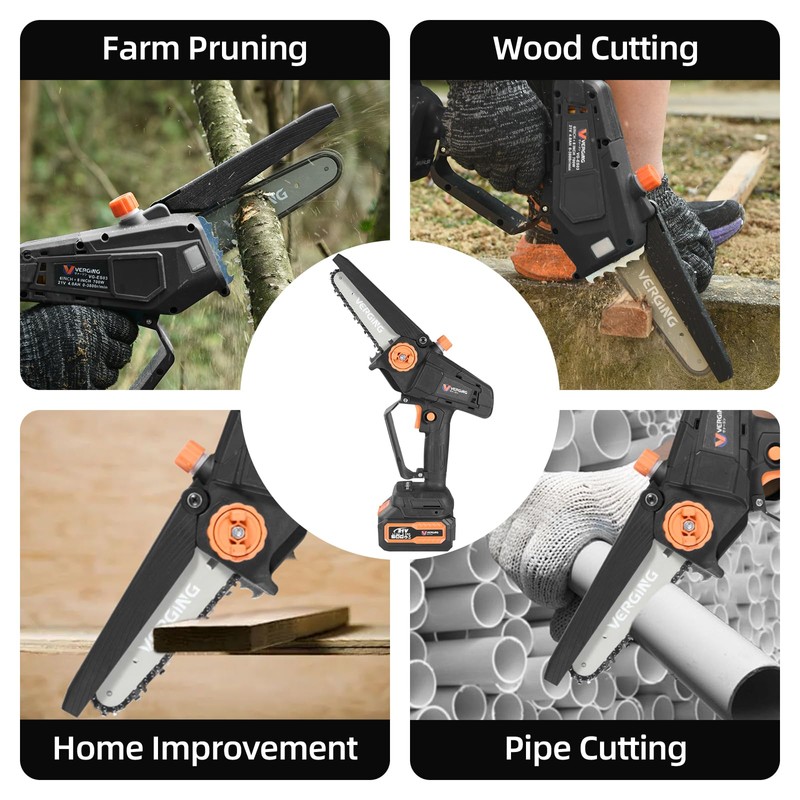 - Lightweight and easy to operate: Hand Chainsaw Weighing only 8 pounds (including battery), the compact design is suitable for one handed operation. Ergonomic grip design, anti slip and shock resistant, and will not feel tired even after long-term use, especially suitable for elderly and female users.