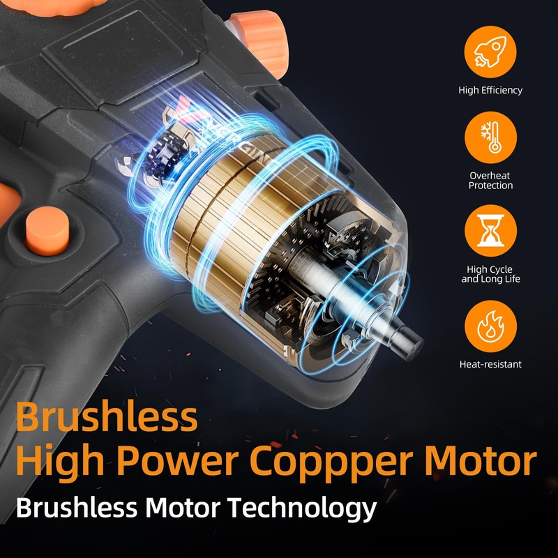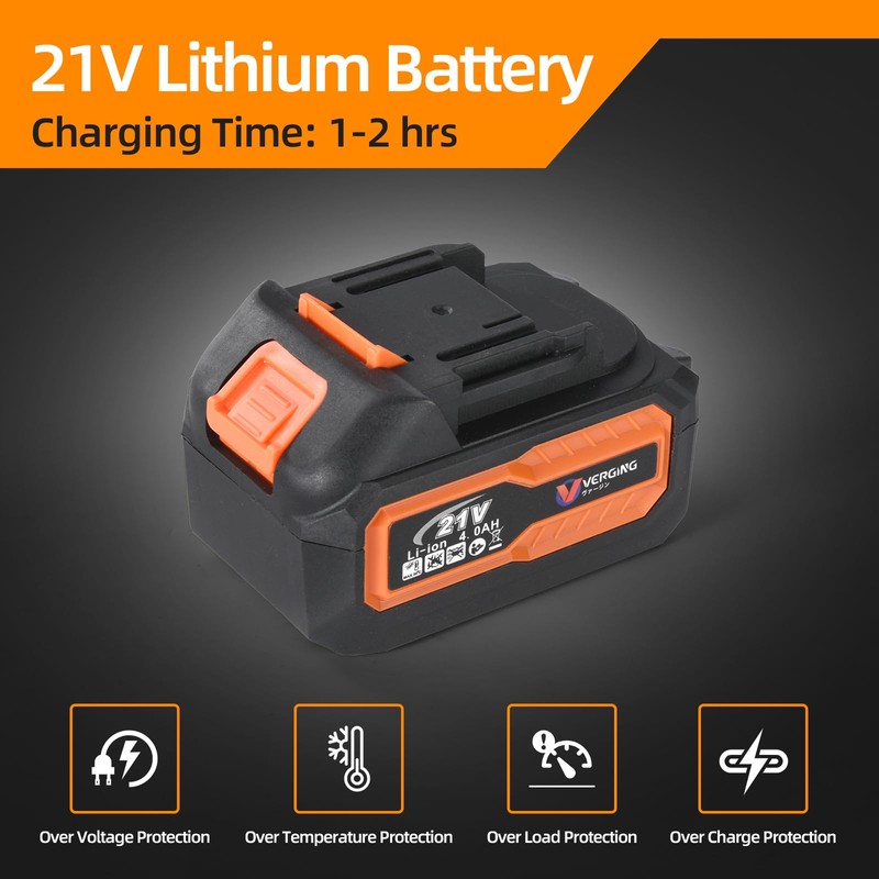- Large capacity rechargeable battery: equipped with 2 x 4000mAh detachable battery, supporting long-term operation. The battery has self overload and temperature protection functions, providing a longer service life and suitable for various gardening and wood processing tasks.