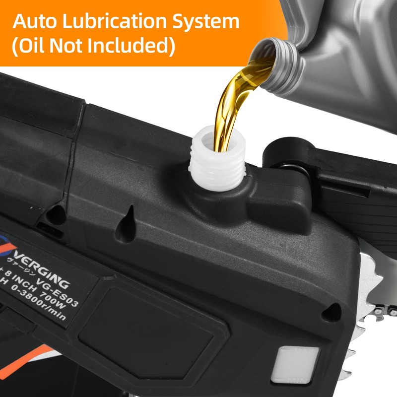 - Automatic lubrication system: Hand Saw Built in automatic chain lubrication system, simply add oil to easily lubricate the chain, reduce wear, and ensure smooth cutting. One bottle of oil can support daily use, saving the trouble of frequently adding lubricating oil.