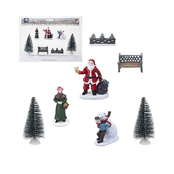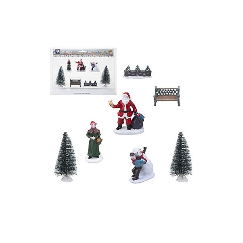 Mini Christmas Village Scene | 7 Piece Set | Multicoloured | 50 cm x 37 cm x 2 cm