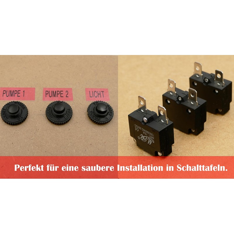 Mini Circuit Breaker 20 Amp Fuse | Max. 250 VAC/32 VDC | Through Hole Mounting | for 6.3 mm Cable Lugs | Perfect for Cars, Campers, Tractors, Model Making...