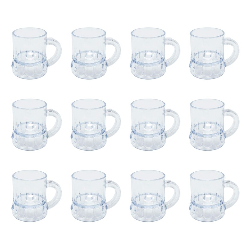 Mini Clear Plastic Beer Mug Shot Glasses- 1.75" Tall - (12 Count)