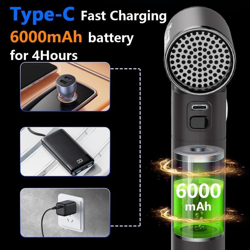 - High Quality & Durable: A+ level 6000mAh Battery, High Speed Brushless Motor, high quality ensure a long lifespan. Supply Free Replacement of this Electric Air Duster for ONE Year. Just feel free to contact us if any questions, you would get reply within 24 hours in time.
