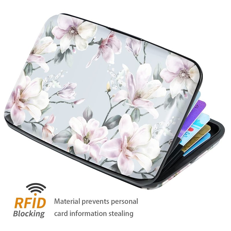 Mini Credit Card Holder for Women,RFID Blocking Slim Hard Card Case ID Case Travel Wallet, Magnolia.
