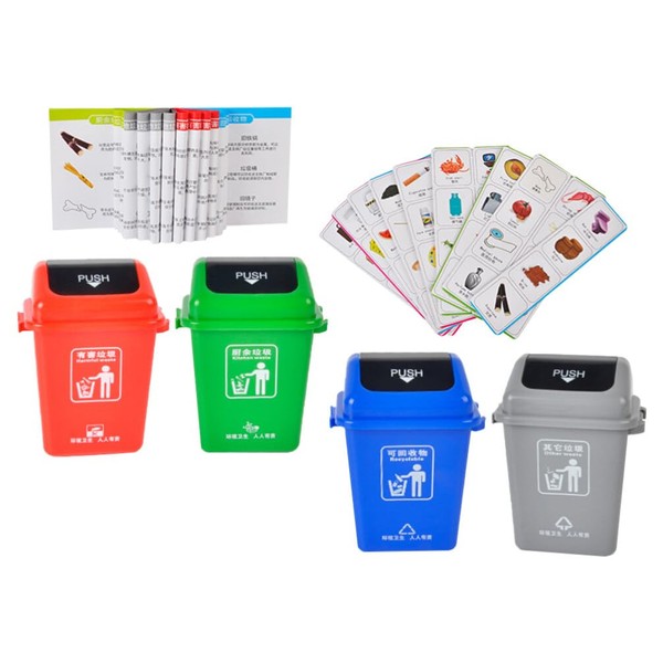 Mini Curbside Garbage 4pcs Garbage Trash Cans with 108pcs Sorting Cards Curbside Vehicle Garbage Bin Trash