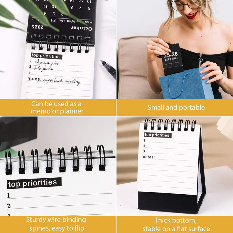 - Desk Calendar 2025/26: You will receive a white mini desk calendar for office table which runs from January 2025 to June 2026. It can help you to keep track of important dates and focus on your plans